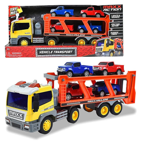 This massive car carrier features a detachable trailer and includes several smaller vehicles, offering a complete “fleet-in-a-box” experience for young drivers.